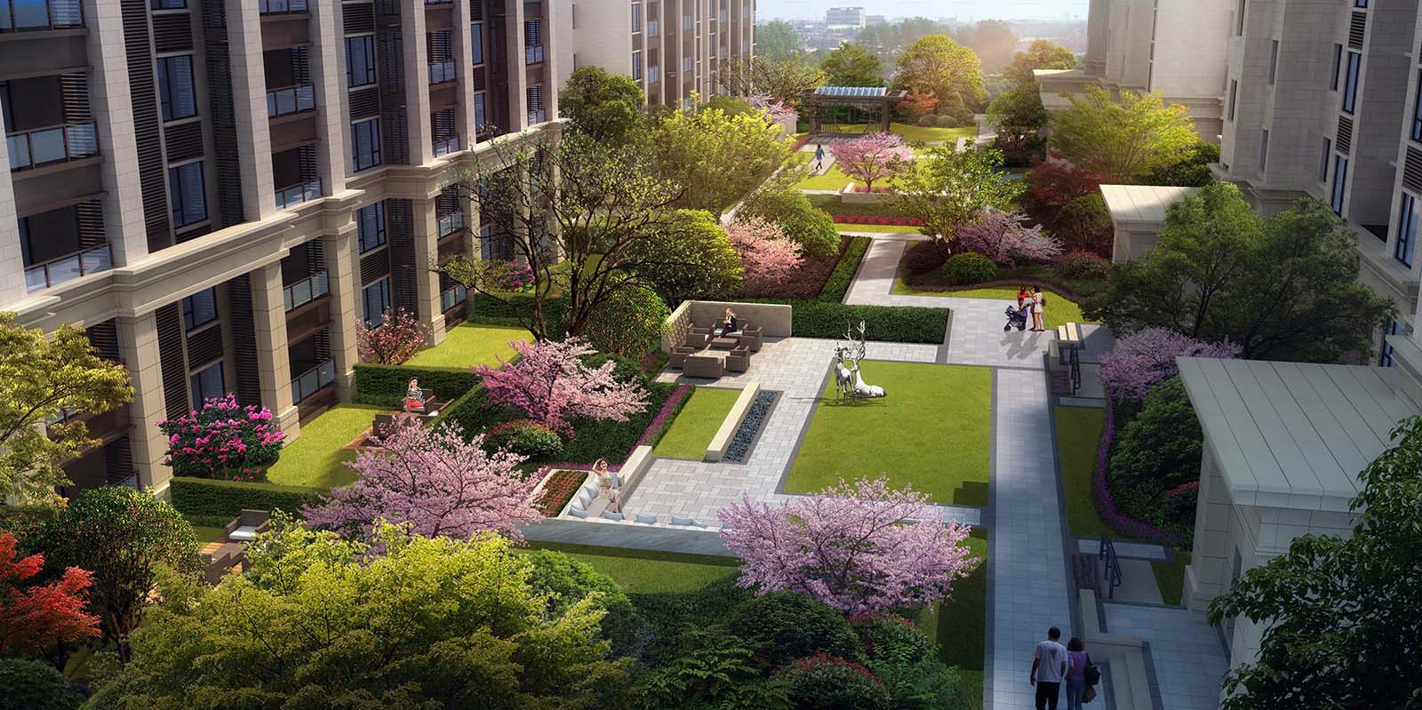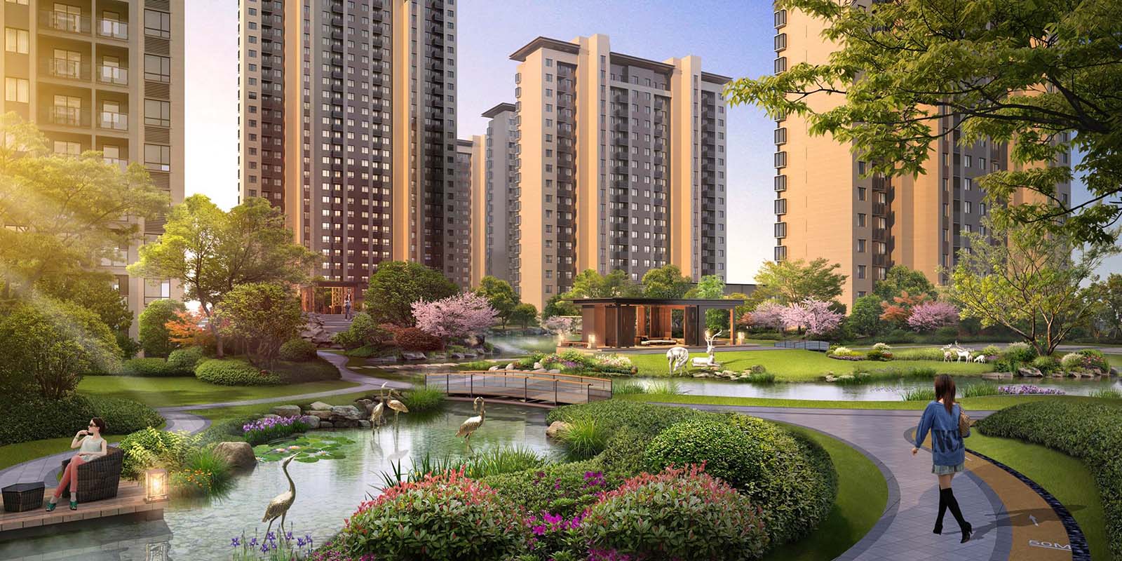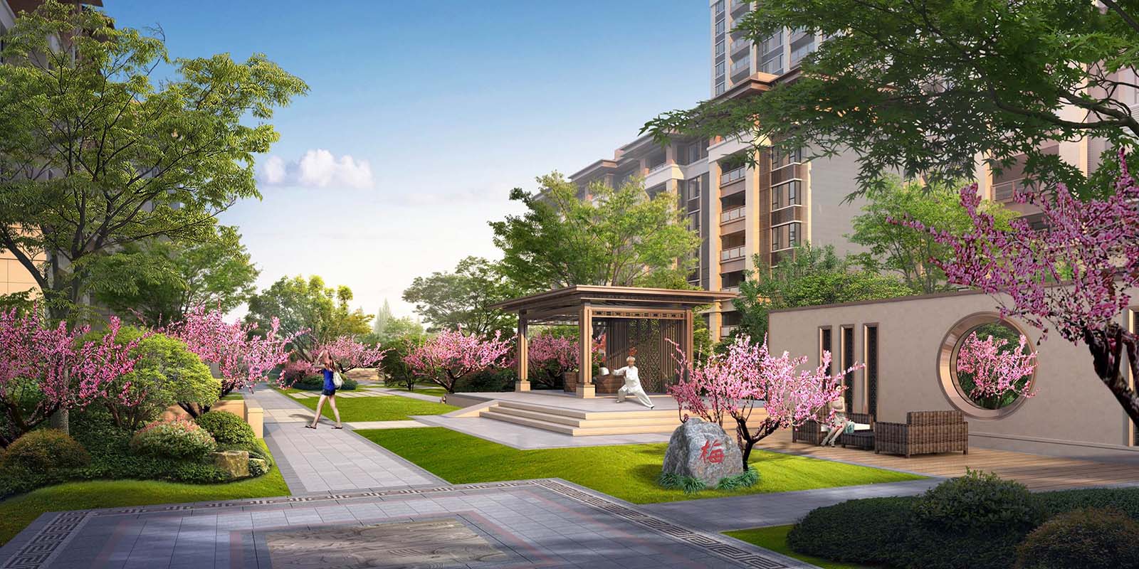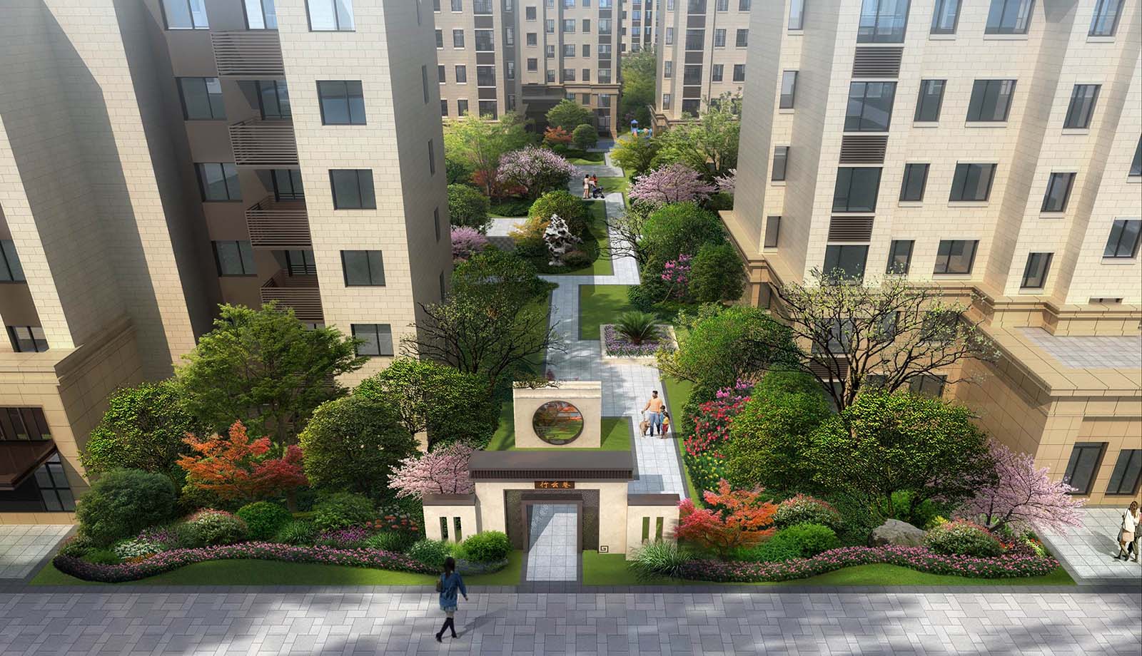 花園洋房區(qū)汲取江南園林坊巷精髓,采用五進三坊六巷的歸家秩序,“疏影橫斜水清淺,暗香浮動月黃昏。”坊巷花開,可緩歸矣。