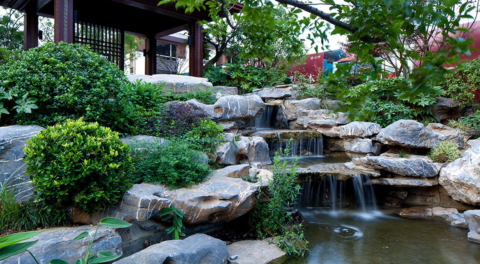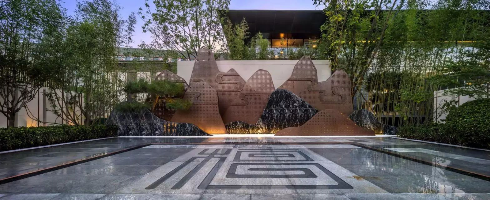 以筑夢東方境,情繞水云庭為設計主題,象法真山真水形意,現代與古典相交融,人文藝術共饗薈萃。打造檀園簡雅、寫意、韻味新中式園林景觀。