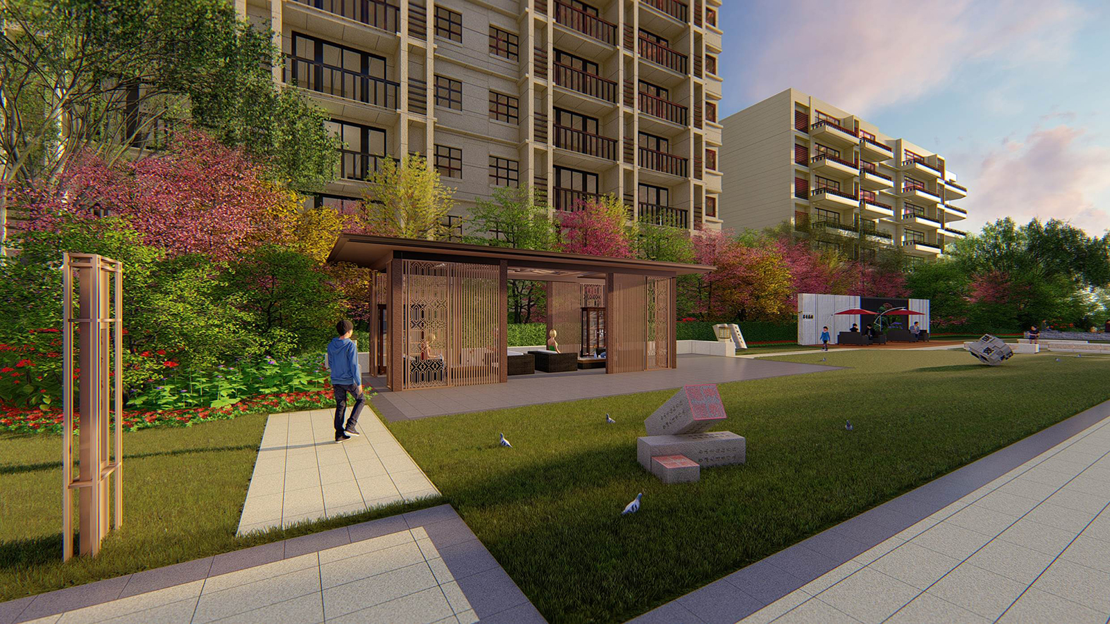 書香主題區旨在為業主創造一個促進鄰里、入學兒童交流、休閑讀書空間,休閑的讀書平臺,打造陽光書房、書香院落,打造宅前、窗前雅致空間 。一方陽光,讓你卸下一身的匆忙與疲憊。
