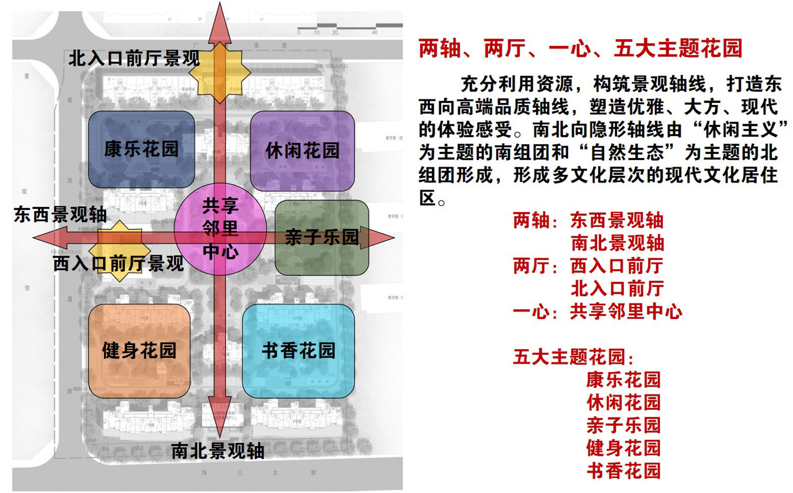 康樂花園包含太極健身區、棋牌娛樂區、康樂健身區、靜養休閑區、卵石康健步道五大功能,