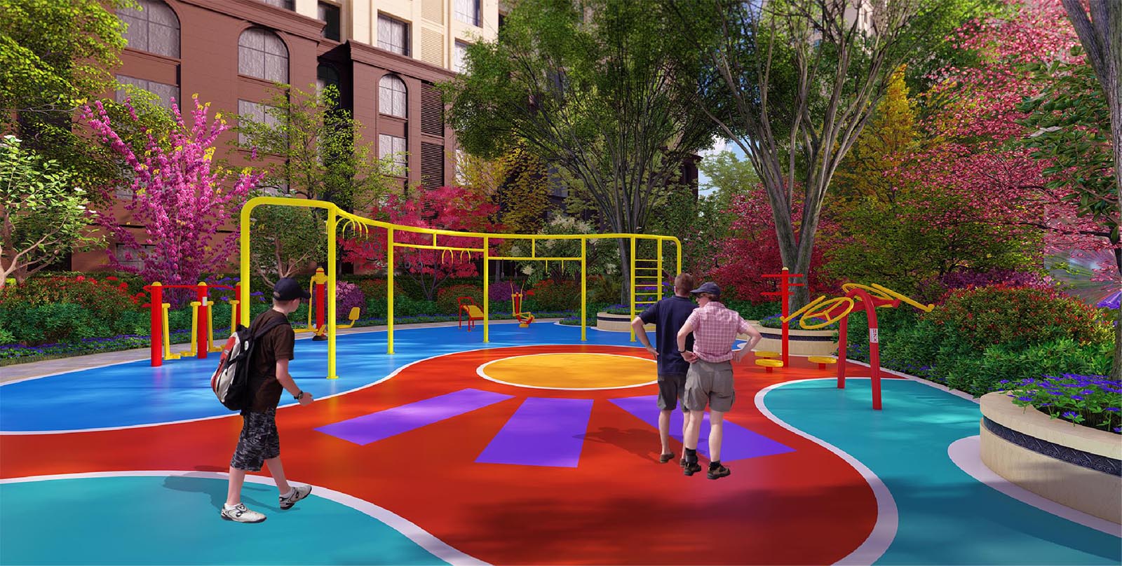 豐富的健身器械,成人在同一時間段將大量集中,形成共同參與的交融場所,創造更多社區業主自發交流的可能性,