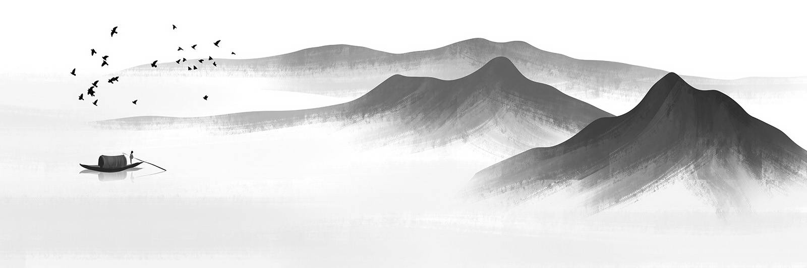 水澗淵流,源水疊流入空谷,輕音潺潺,似遠實近。