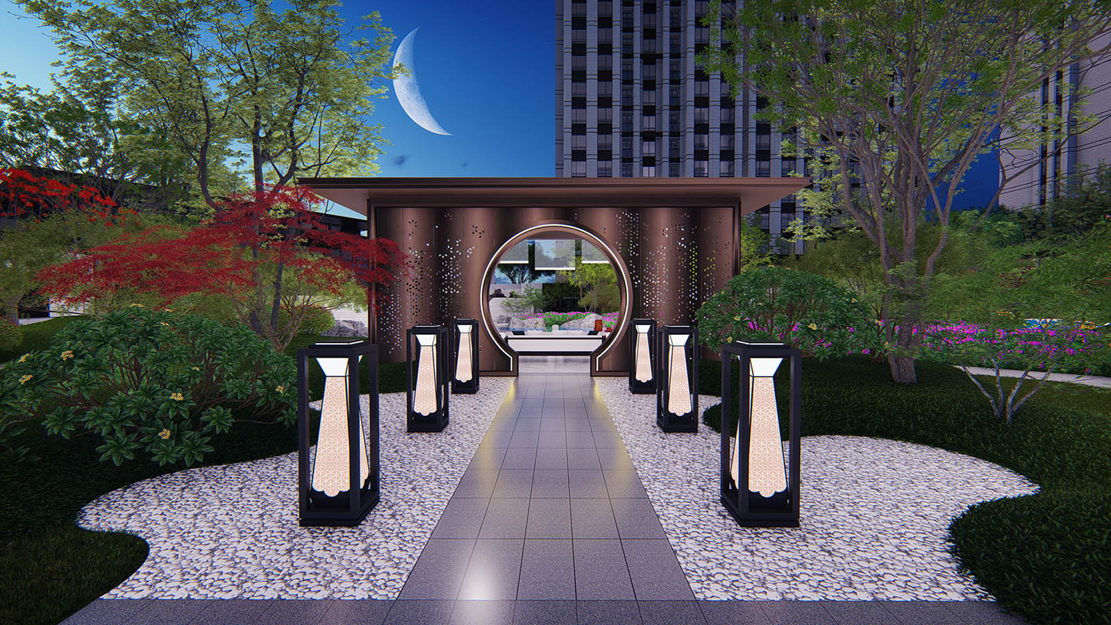 層層遞進式的景觀空間,突出場地精神。 蓄勢、禮儀、休閑、靜雅、禪意、生活。